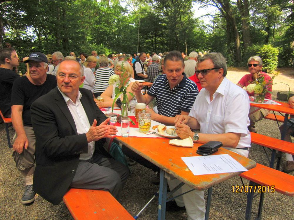 Diesmal war uns das sonnige und nicht zu heiße Sommerwetter unter der Bismarckeiche gewogen, nach Wahl im Halbschatten oder in der Sonne, zählten wir doch am Ende der kurzweiligen 3 Stunden Jazz um die 170 Besucher, die das Ambiente unter den Bäumen genossen und den Angeboten auf der Getränke - und Essenskarte eifrig zusprachen. Besonderes Lob gab es für den außergewöhnlich schönen Tischschmuck, für die Helfer am Fass und hinter der Theke und die Küchenbesetzung, die routiniert die Essen zubereitete.